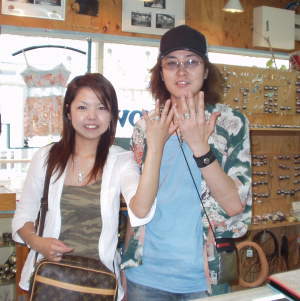 s市TさまandIさま ナンバー8ターコイズ最高!! ペアリングを美しいスパイダーウェブを持つトルコ石で 作らせて頂きました。 TさまandIさま。 |